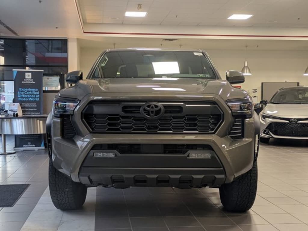 4WD, 3.583 Axle Ratio, 4-Wheel Disc Brakes, 6 Speakers, ABS brakes, Air Conditioning, All Weather Floor Liners (TMS), Alloy wheels, AM/FM radio: SiriusXM, Anti-whiplash front head restraints, Apple CarPlay/Android Auto, Auto High-beam Headlights, Auto-dimming Rear-View mirror, Automatic temperature control, Bed Step (TMS), Black Badge Overlay (TMS), Black Chrome Exhaust Tip (TMS), Brake assist, Bumpers: body-color, Door Edge Guard (TMS), Driver door bin, Driver vanity mirror, Dual front impact airbags, Dual front side impact airbags, Electronic Stability Control, Emergency communication system: Safety Connect (1-year trial), Exterior Parking Camera Rear, Fabric Seat Trim, Front anti-roll bar, Front Bucket Seats, Front Center Armrest, Front fog lights, Front reading lights, Fully automatic headlights, Fully automatic headlights, Heated door mirrors, Heated Seats, Illuminated entry, JBL Premium Audio, Knee airbag, Leather Shift Knob, Leather steering wheel, Low tire pressure warning, Mudguards (TMS), Occupant sensing airbag, Outside temperature display, Overhead airbag, Overhead console, Panic alarm, Passenger door bin, Passenger vanity mirror, Phone Cables - Smart USB (TMS), Power door mirrors, Power steering, Power windows, Predator Step (TMS), Radio: 8" Toyota Audio Multimedia, Rear step bumper, Rear window defroster, Remote keyless entry, Security system, SofTex Seat Trim, Speed control, Speed-sensing steering, Split folding rear seat, Spray-On Bed Liner (TMS), Steering wheel mounted audio controls, Tachometer, Telescoping steering wheel, Tilt steering wheel, Traction control, Trip computer, Turn signal indicator mirrors, Variably intermittent wipers, and Wheels: 17" TRD Off-Road Alloy. *Your additional costs are sales tax, tag and title fees for the state in which the vehicle will be registered, any dealer-installed options (if applicable) and a dealer processing fee ($800 Maryland; not required by law); ($477 Pennsylvania). Prices are subject to change, and prior sales are excluded from these offers. While every reasonable effort is made to ensure the accuracy of this information, we are not responsible for any errors or omissions contained on these pages. Please verify any information in question with the dealer.