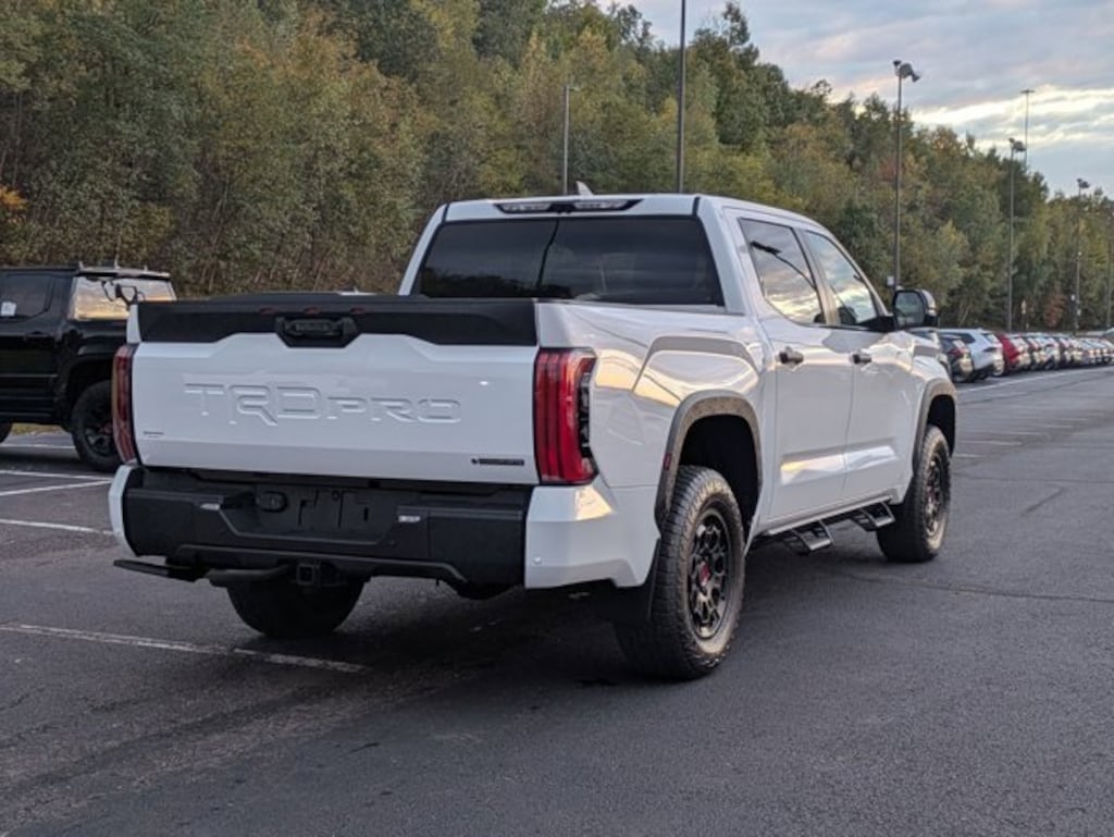 TRD Pro Package, 3.4L V6, 12 Speakers, 3.31 Axle Ratio, 4-Wheel Disc Brakes, ABS brakes, Air Conditioning, Alloy wheels, AM/FM radio: SiriusXM, Apple CarPlay/Android Auto, Auto High-beam Headlights, Auto-dimming door mirrors, Auto-dimming Rear-View mirror, Automatic temperature control, Badge Overlays - Matte Black (TMS), Bed Step (TMS), Brake assist, Bumpers: body-color, Delay-off headlights, Driver door bin, Driver vanity mirror, Dual front impact airbags, Dual front side impact airbags, Electronic Stability Control, Emergency communication system: Safety Connect (up to 10-year trial subscription), Exterior Parking Camera Rear, Front anti-roll bar, Front Bucket Seats, Front Center Armrest, Front dual zone A/C, Front fog lights, Front reading lights, Front wheel independent suspension, Fully automatic headlights, Garage door transmitter: HomeLink, Heated & Ventilated Front Bucket Seats, Heated door mirrors, Heated front seats, Illuminated entry, Knee airbag, Leather Shift Knob, Leather steering wheel, Low tire pressure warning, Memory seat, Navigation system: Drive Connect Cloud Navigation (1-year trial subscription), Occupant sensing airbag, Outside temperature display, Overhead airbag, Overhead console, Panic alarm, Passenger door bin, Passenger vanity mirror, Phone Cables - Smart USB (TMS), Power door mirrors, Power driver seat, Power moonroof, Power passenger seat, Power steering, Power windows, Predator Drop Step (TMS), Radio data system, Radio: Premium Audio w/JBL, Rear reading lights, Rear seat center armrest, Rear step bumper, Rear window defroster, Remote keyless entry, Security system, SofTex Seat Trim, Speed control, Speed-sensing steering, Split folding rear seat, Sport steering wheel, Stainless Steel Door Edge Guards (TMS), Steering wheel mounted audio controls, Tachometer, Telescoping steering wheel, Tilt steering wheel, Traction control, Trip computer, Turn signal indicator mirrors, Variably intermittent wipers, Ventilated front seats, Voltmeter, and Wheels: 18" Black Forged Aluminum BBS. *Your additional costs are sales tax, tag and title fees for the state in which the vehicle will be registered, any dealer-installed options (if applicable) and a dealer processing fee ($800 Maryland; not required by law); ($477 Pennsylvania). Prices are subject to change, and prior sales are excluded from these offers. While every reasonable effort is made to ensure the accuracy of this information, we are not responsible for any errors or omissions contained on these pages. Please verify any information in question with the dealer.